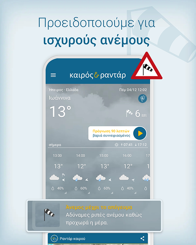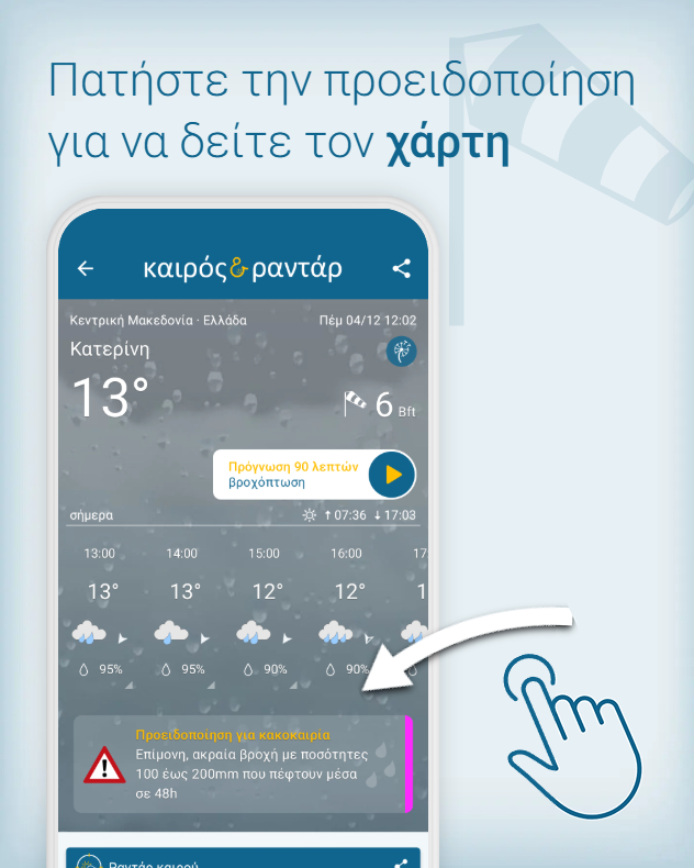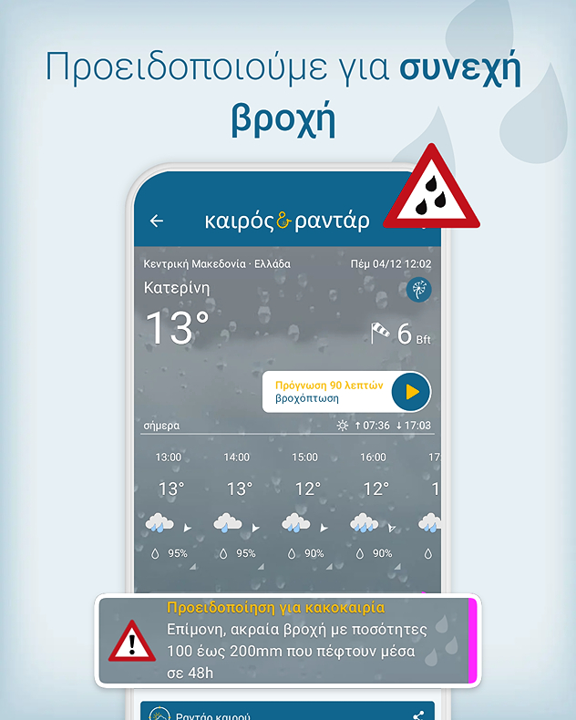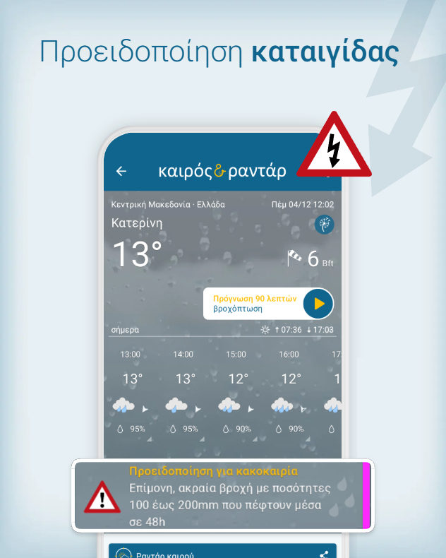Η εφαρμογή Καιρός & Ραντάρ προειδοποιεί για κακές καιρικές συνθήκες