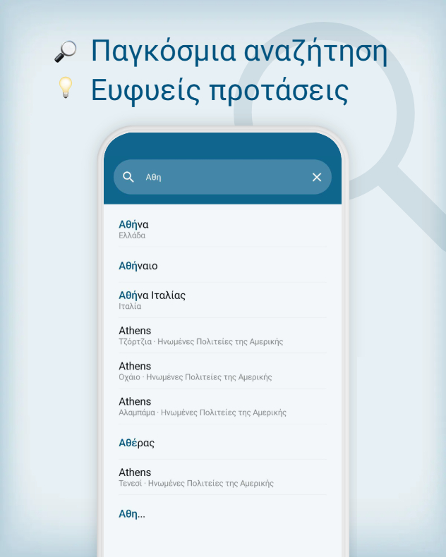 Ανεξάρτητα από το πού βρίσκεσαι ή πού ταξιδεύεις, με την αναζήτηση τοποθεσίας στην εφαρμογή Καιρός & Ραντάρ έχεις πάντα υπό έλεγχο την εξέλιξη του καιρού για οποιαδήποτε τοποθεσία. Οι έξυπνες προτάσεις αναζήτησης σε οδηγούν αμέσως στον επιθυμητό προορισμό.