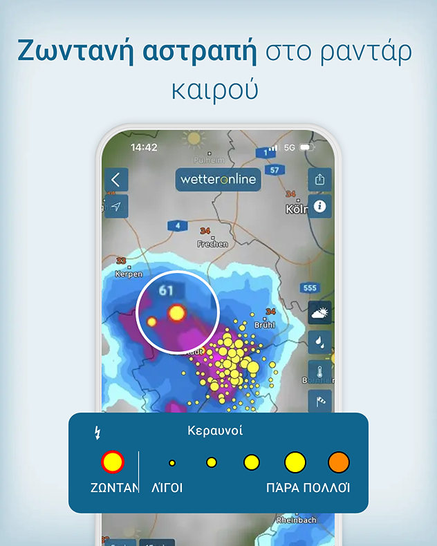 Θέλετε να μάθετε ακόμη περισσότερα; Από το ραντάρ καιρού, μπορείτε να αποκτήσετε πρόσβαση στα ειδικά ραντάρ, όπως ραντάρ βροχής, ραντάρ ανέμου, ραντάρ θερμοκρασίας ή ραντάρ κεραυνών, με ένα μόνο πάτημα.